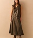 YAYA Faux leather A-line midi skirt with pockets - DARK TAUPE GREY